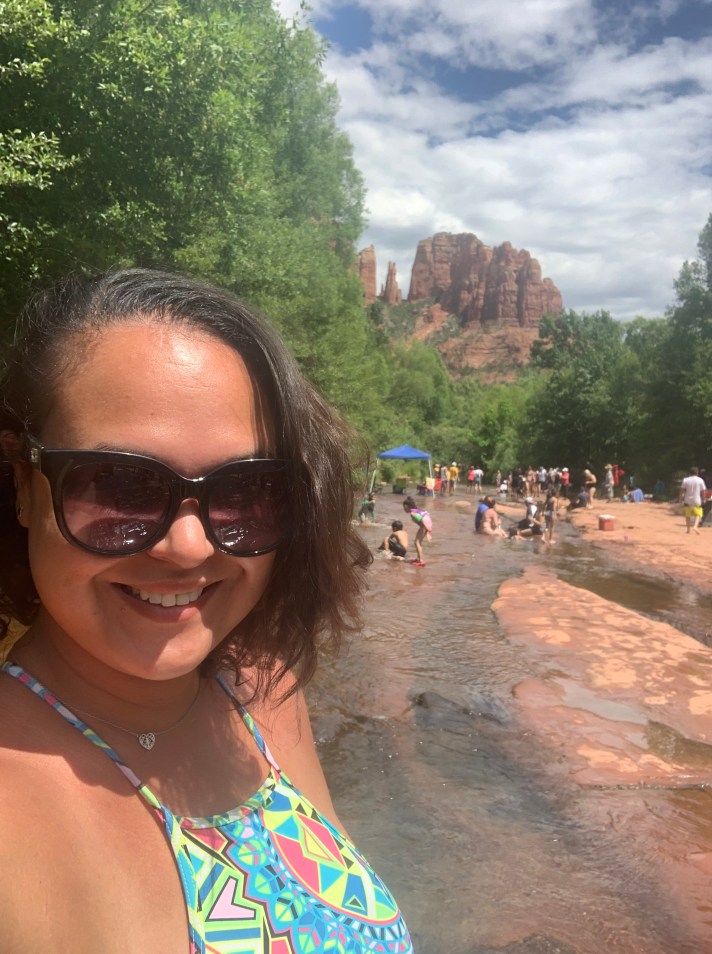 The mountains and rock formations are a deep orangey-red, while the foliage is a rich, saturated green. Arizona’s sun then touches all the edges with a golden finish. These colors inspired the Sedona pieces throughout my collections.